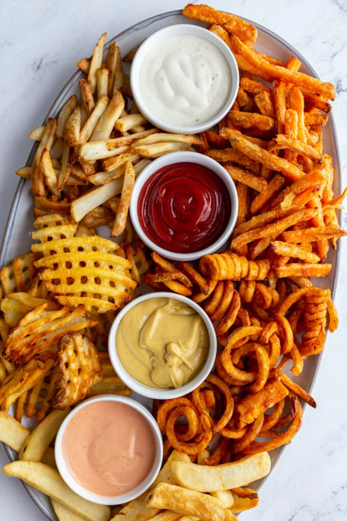 An extra-large heap of crispy French fries served in a catering tray. This French Fries Tray is a simple yet universally loved addition to any party, giving everyone something familiar to munch on. Whether paired with our wings and burgers or eaten on their own with ketchup, these golden fries are an easy crowd-pleaser that completes your catering menu.